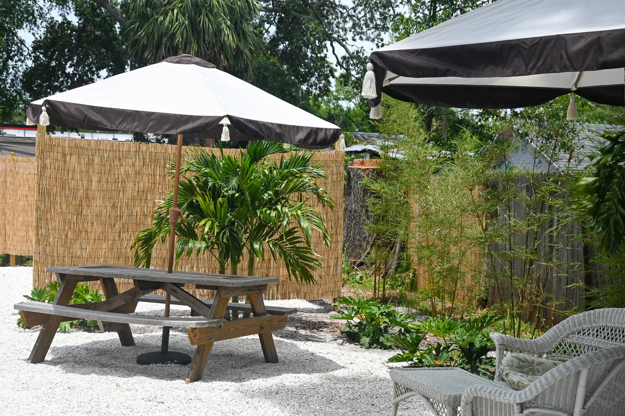 Located in Downtown Dunedin (right off the Pinellas Trail), our oasis offers a refreshing respite from the bustle outside. Inside, you’ll find a harmonious blend of old-world apothecary charm and modern bohemian flair. Shelves lined with glass jars of herbs and spices evoke a traditional apothecary, while cozy seating areas invite you to sit back and sip on a wellness beverage. We even have a breezy porch area – a screened-in outdoor nook where you can enjoy Florida’s sunshine and gulf breezes in a bug-free setting.